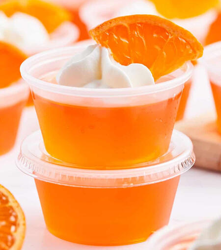 La Noscean Orange juice blended together with Garlean Vodka and gelatin, chilled over night with a topping of cream. ~Great for parties and celebrations!