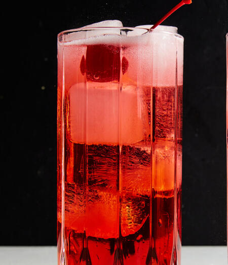 Perismmon Syrup mixed with lemmonete club soda within a glass of ice, garnished with a Labyrinthos Cherry. ~Popularized by servants of Scathach within Dun Scaith.